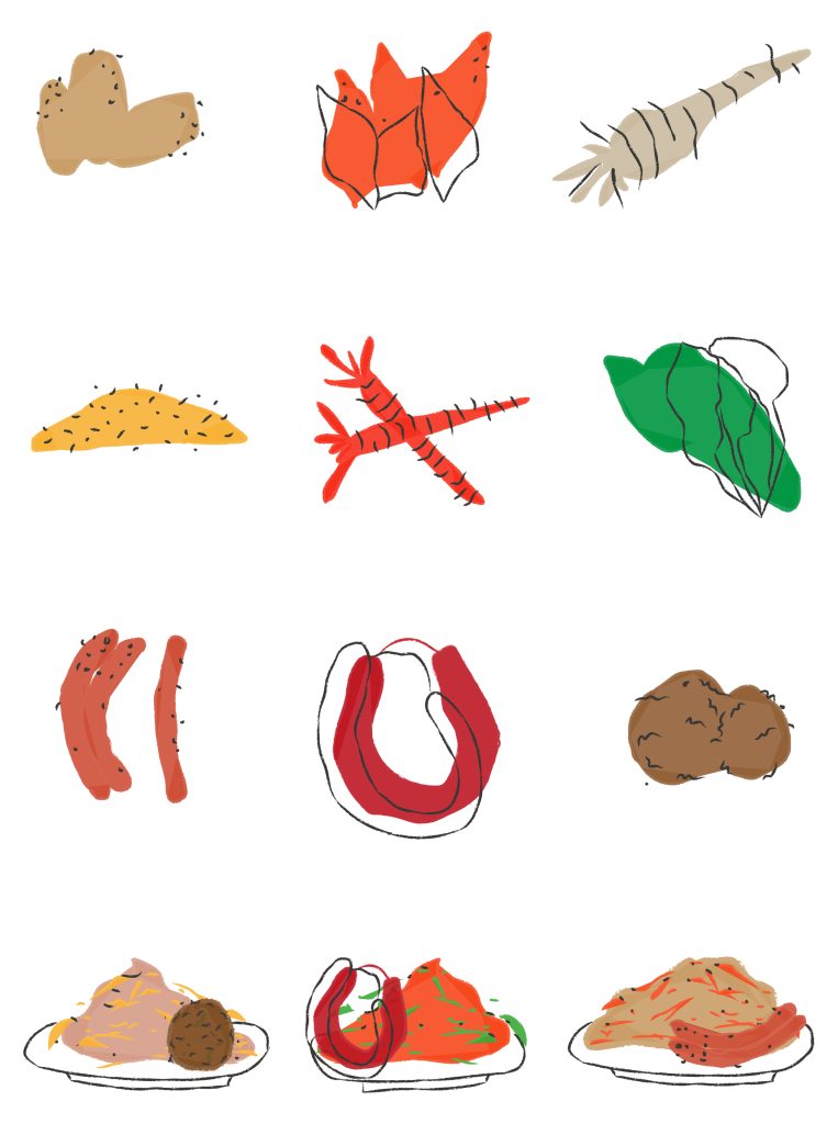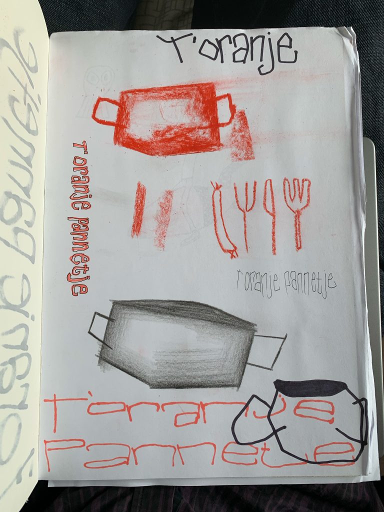 Ik ben op de naam ’t Oranje pannetje gekomen omdat oranje dé kleur van Nederland is en stamppot natuurlijk een Nederlands gerecht is. De ingrediënten heb ik in een getekende stijl gemaakt om het een hele gezellige en vrolijke uitstraling te geven.